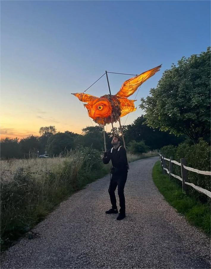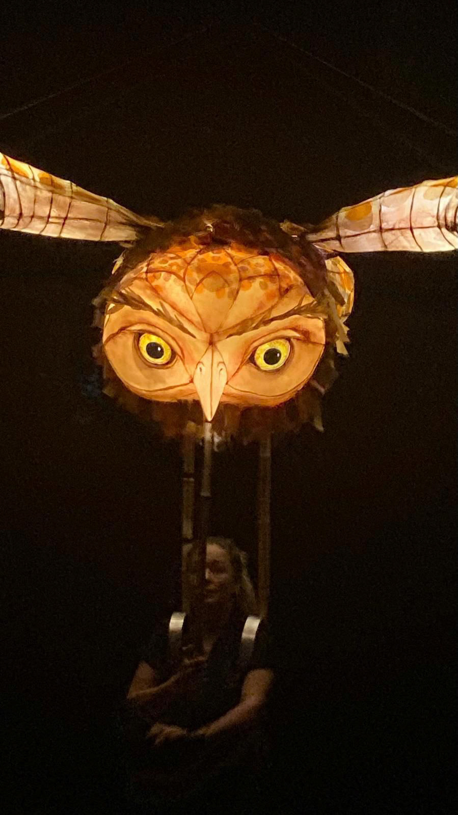 Wearable glowing Owl structure with wing movement