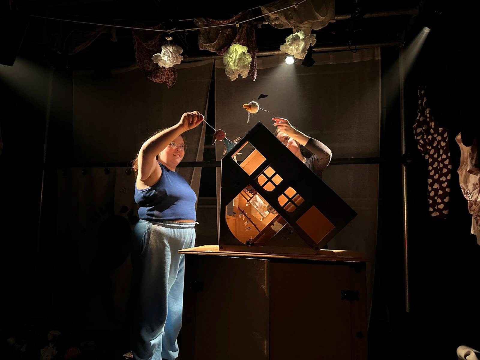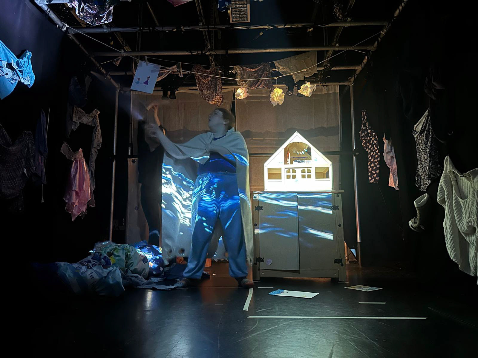 Animation, light and live performance: Trashy Treasure Island, a work in progress for children, about a girl who gets swept into an adventure like no other, involving puppetry, projection mapping, Rose Bruford Symposium 2024